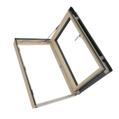 Fenêtre ouverture à l'anglaise en bois et alu RAL7016